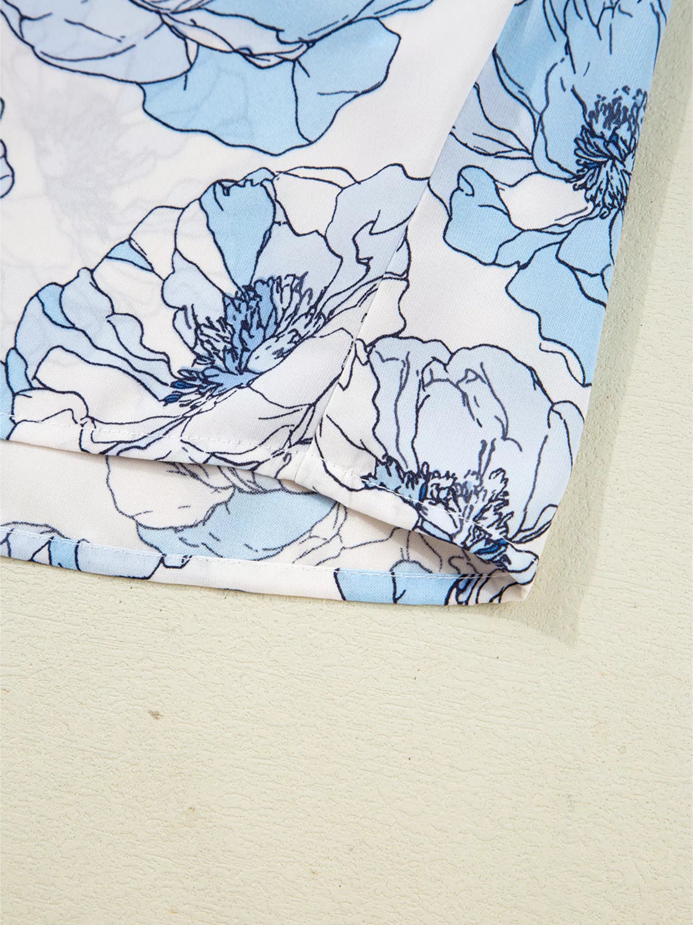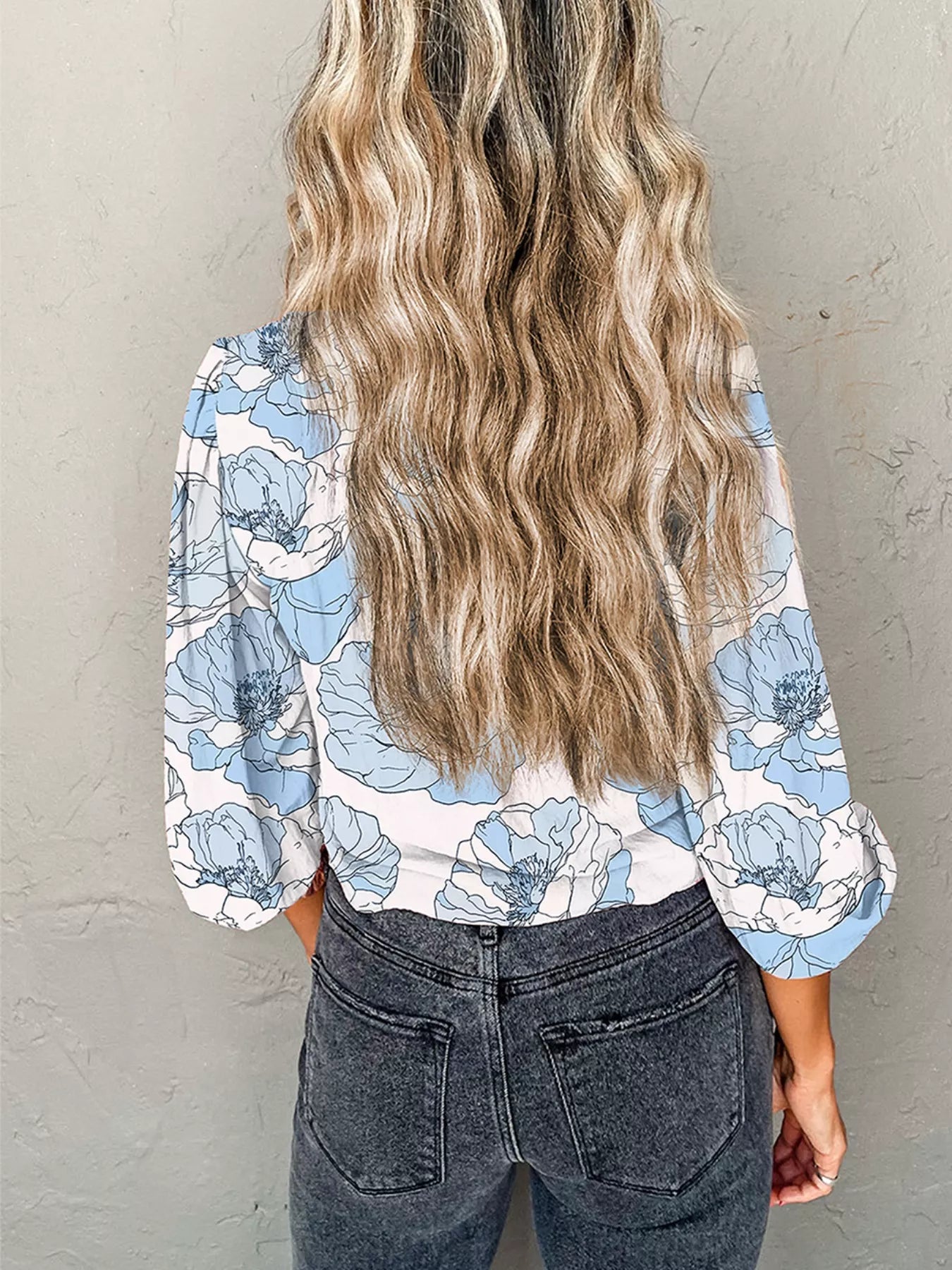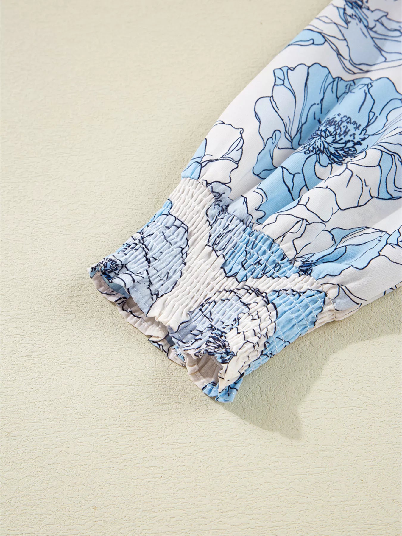 Floral Print Frilly Smocked Square Neck Long Sleeve Blouse 5-10 Business Day Shipping from the Warehouse