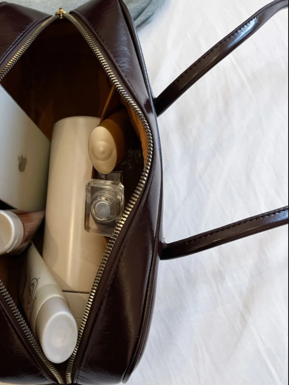 Leather Bow Trim Shoulder Bag 5 - 10 Business Days Shipping From Warehouse