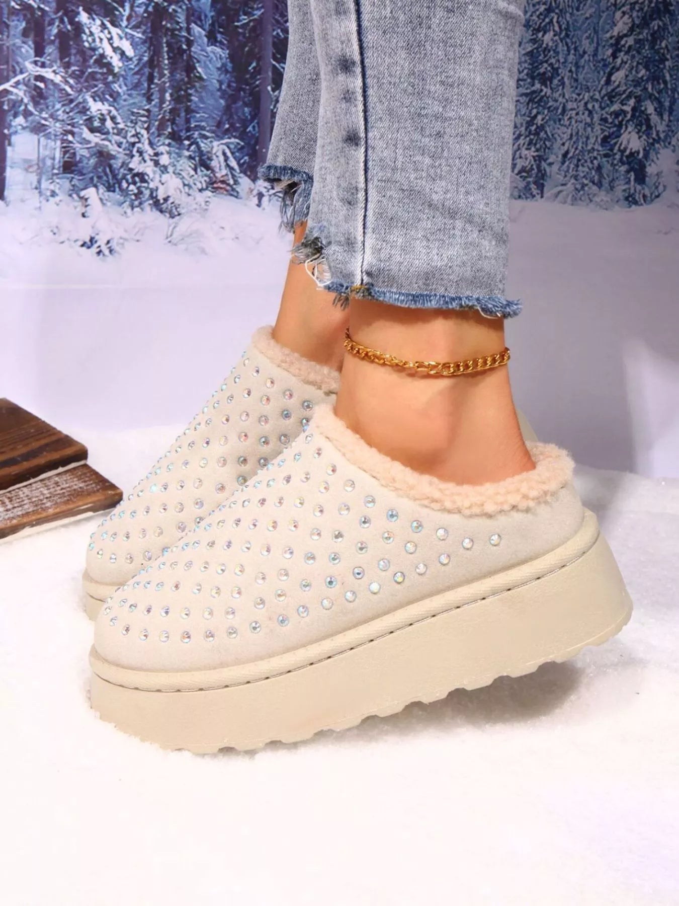 Rhinestone Round Toe Platform Slippers 5-10 Business Day Shipping from the Warehouse